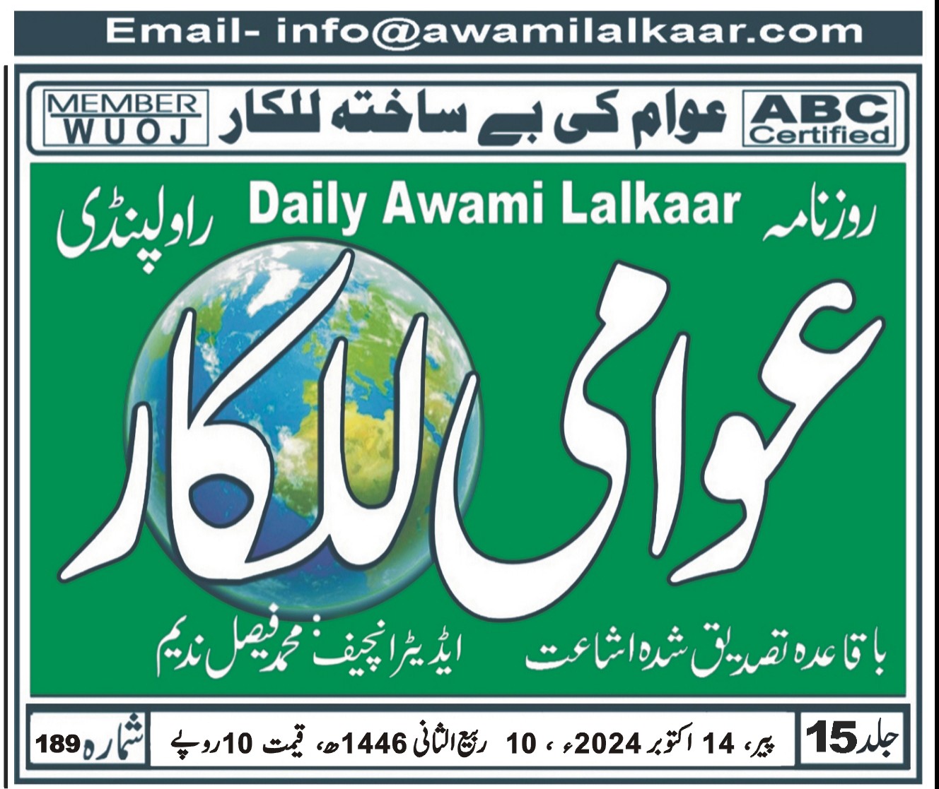 پی ڈی ایف ڈاؤن لوڈ کرنے کے لیے نیچے دیے گئے لنک پر کلک کیجئے Awami Lalkaar 14-10-2024ڈاؤن لوڈ . . . . . . .
