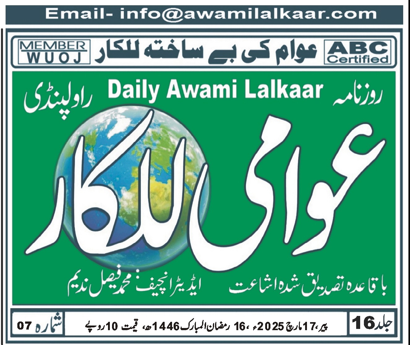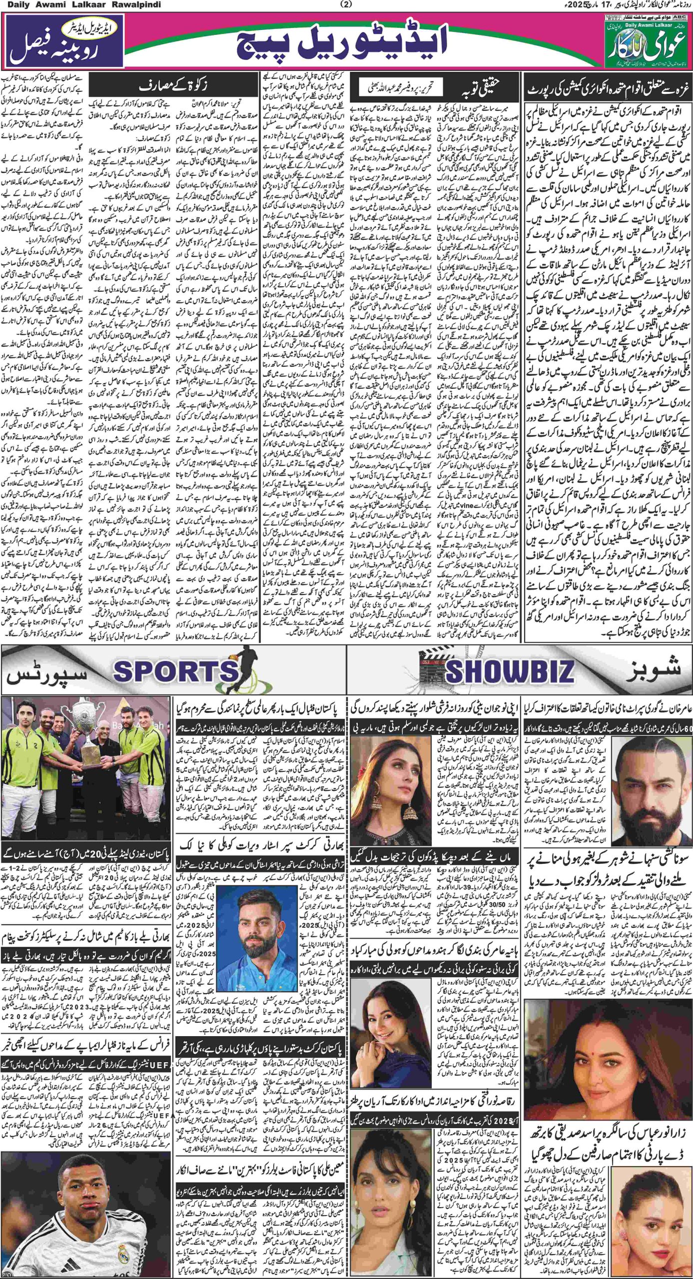 پی ڈی ایف ڈاؤن لوڈ کرنے کے لیے نیچے دیے گئے ڈاؤن لوڈ کے بٹن پر کلک کیجئے Awami Lalkaar 17-03-2025ڈاؤن لوڈ