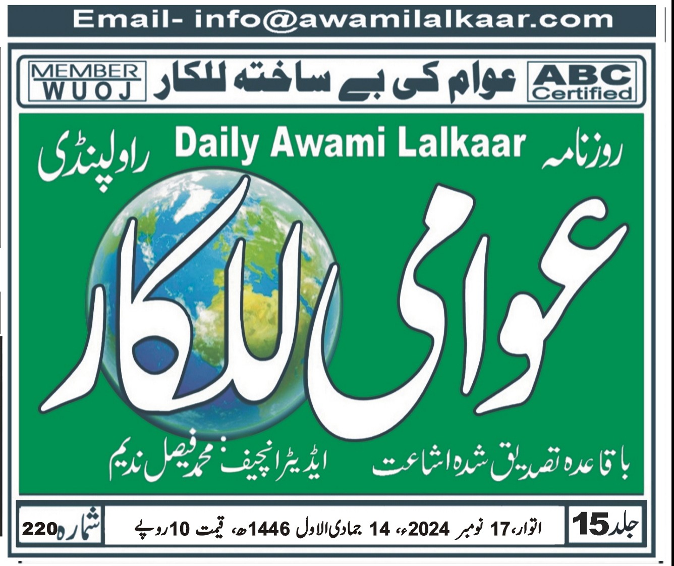 عوامی للکار راولپنڈی بروز اتوار 17 نومبر 2024