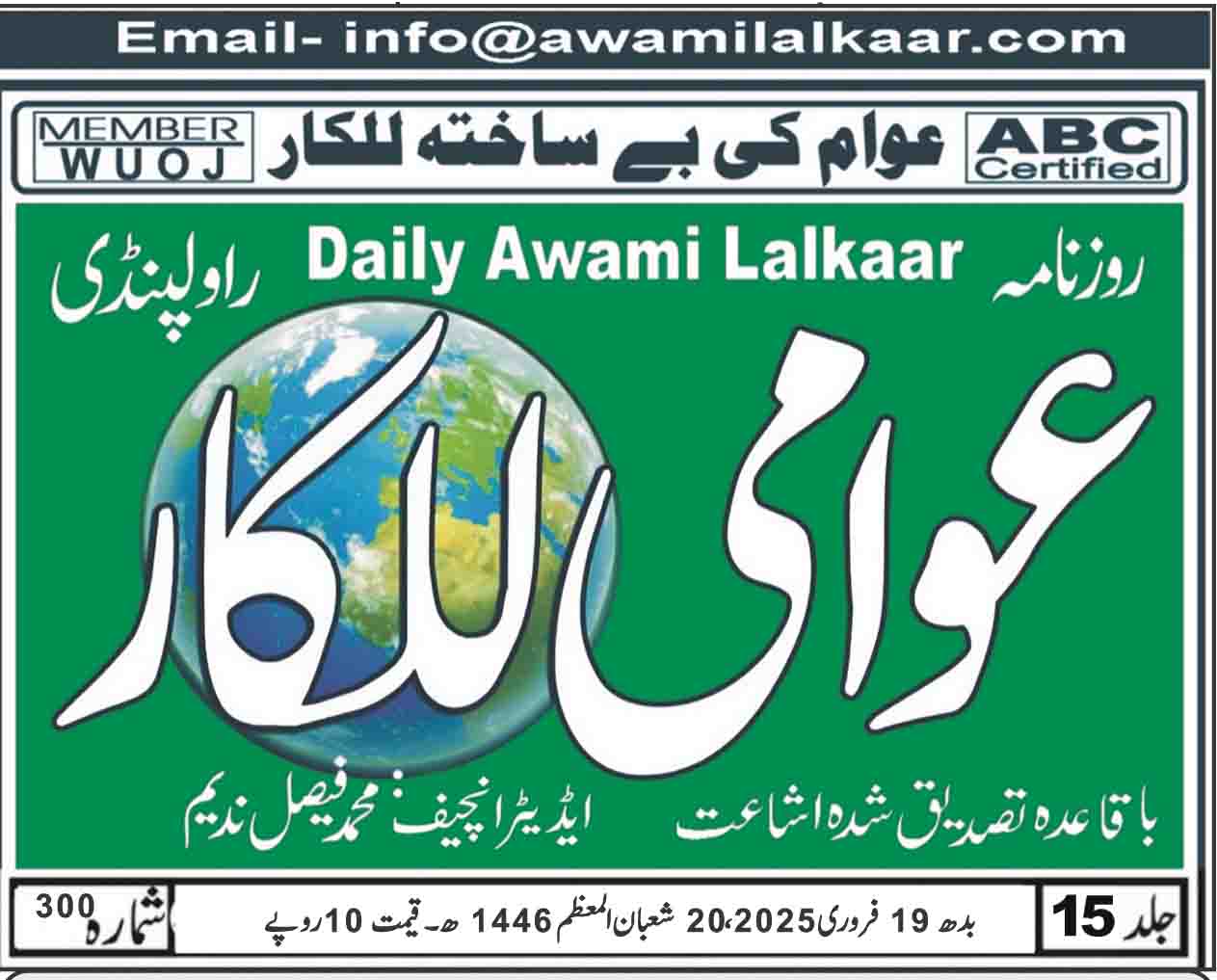 پی ڈی ایف ڈاؤن لوڈ کرنے کے لیے نیچے دیے گئے ڈاؤن لوڈ کے بٹن پر کلک کیجئے Awami Lalkaar 19-02-2025ڈاؤن لوڈ