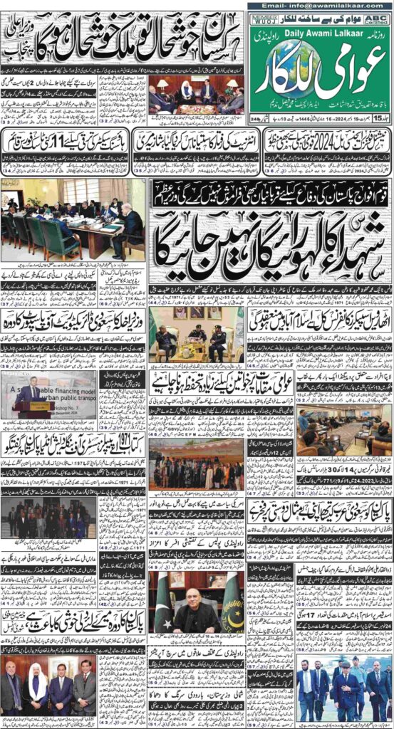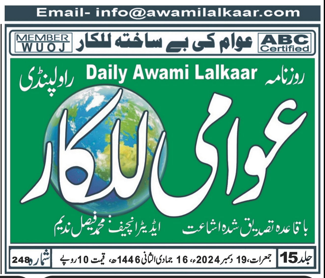 پی ڈی ایف ڈاؤن لوڈ کرنے کے لیے نیچے دیے گئے ڈاؤن لوڈ کے بٹن پر کلک کیجئے Awami Lalkaar 19-12-2024ڈاؤن لوڈ
