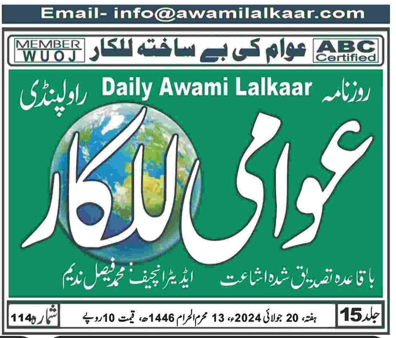 پی ڈی ایف ڈاؤن لوڈ کرنے کے لیے نیچے دیے گئے ڈاؤن لوڈ کے بٹن پر کلک کیجئے Awami Lalkaar 20-07-2024ڈاؤن لوڈ