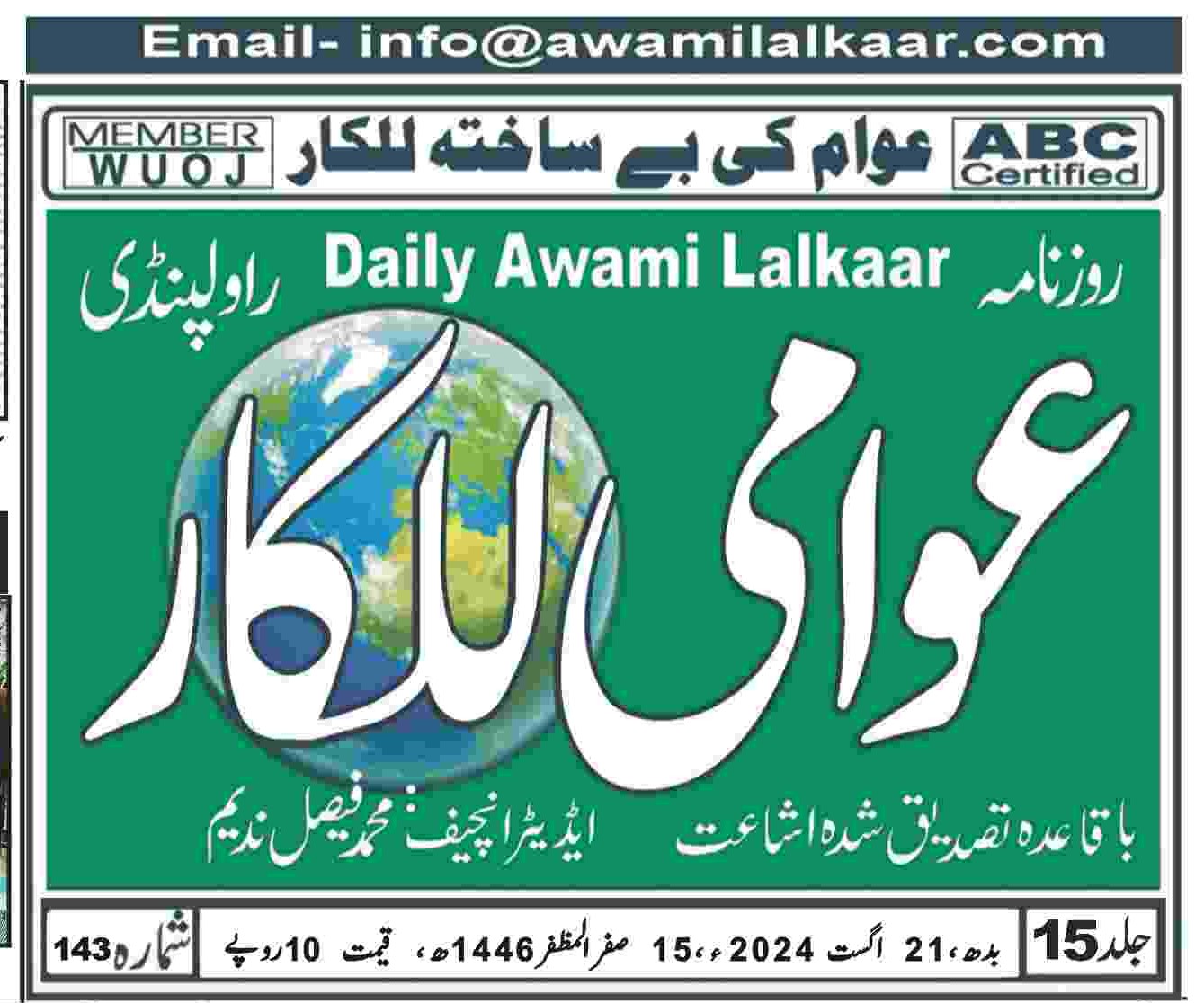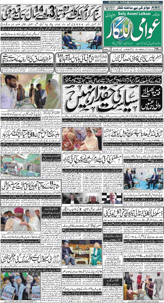 پی ڈی ایف ڈاؤن لوڈ کرنے کے لیے نیچے دیے گئے ڈاؤن لوڈ کے بٹن پر کلک کیجئے Awami Lalkaar 21-08-2024.ڈاؤن لوڈ .