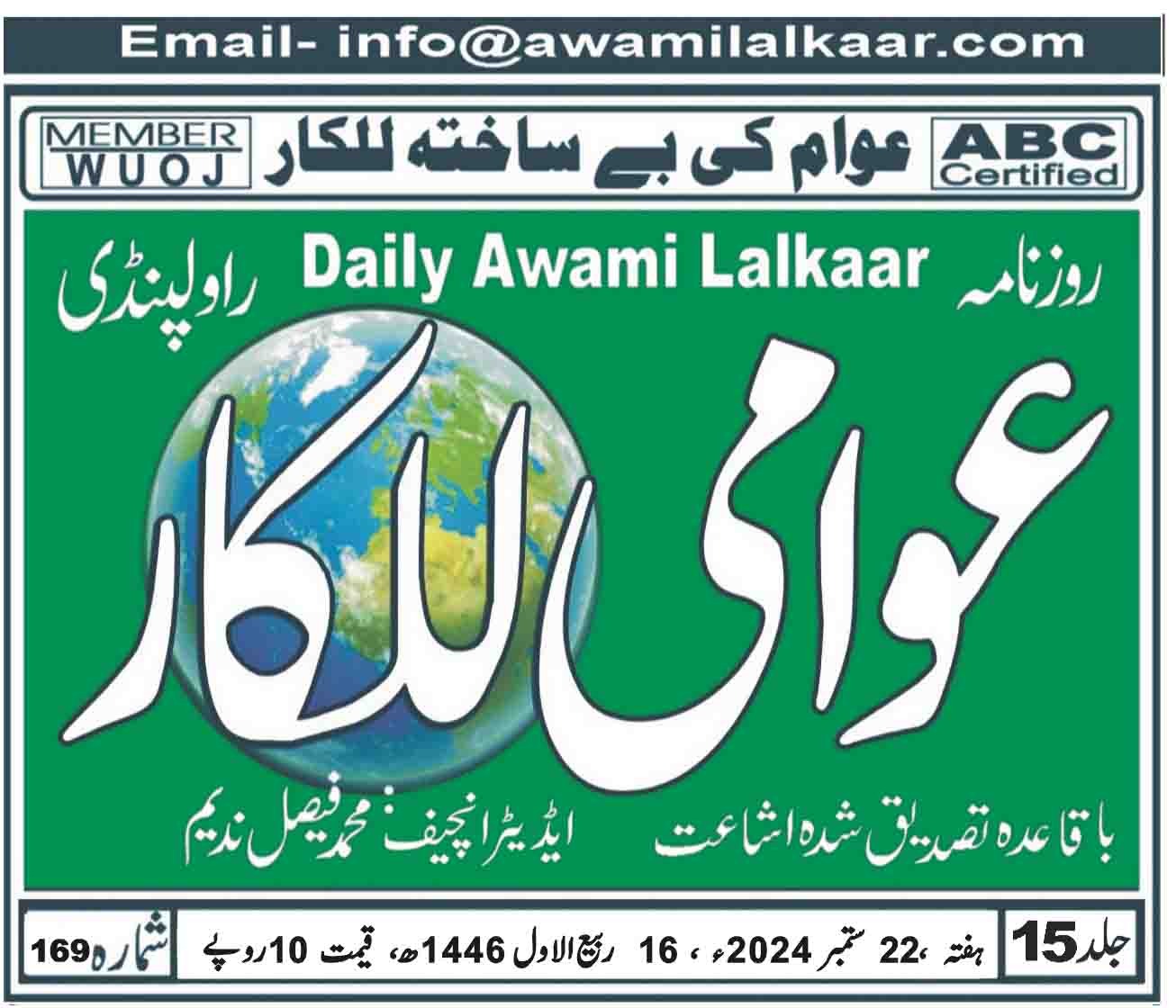 پی ڈی ایف ڈاؤن لوڈ کرنے کے لیے نیچے دیے گئے ڈاؤن لوڈ کے بٹن پر کلک کیجئے Awami Lalkaar 21-09-2024ڈاؤن لوڈ . . . . . . . .
