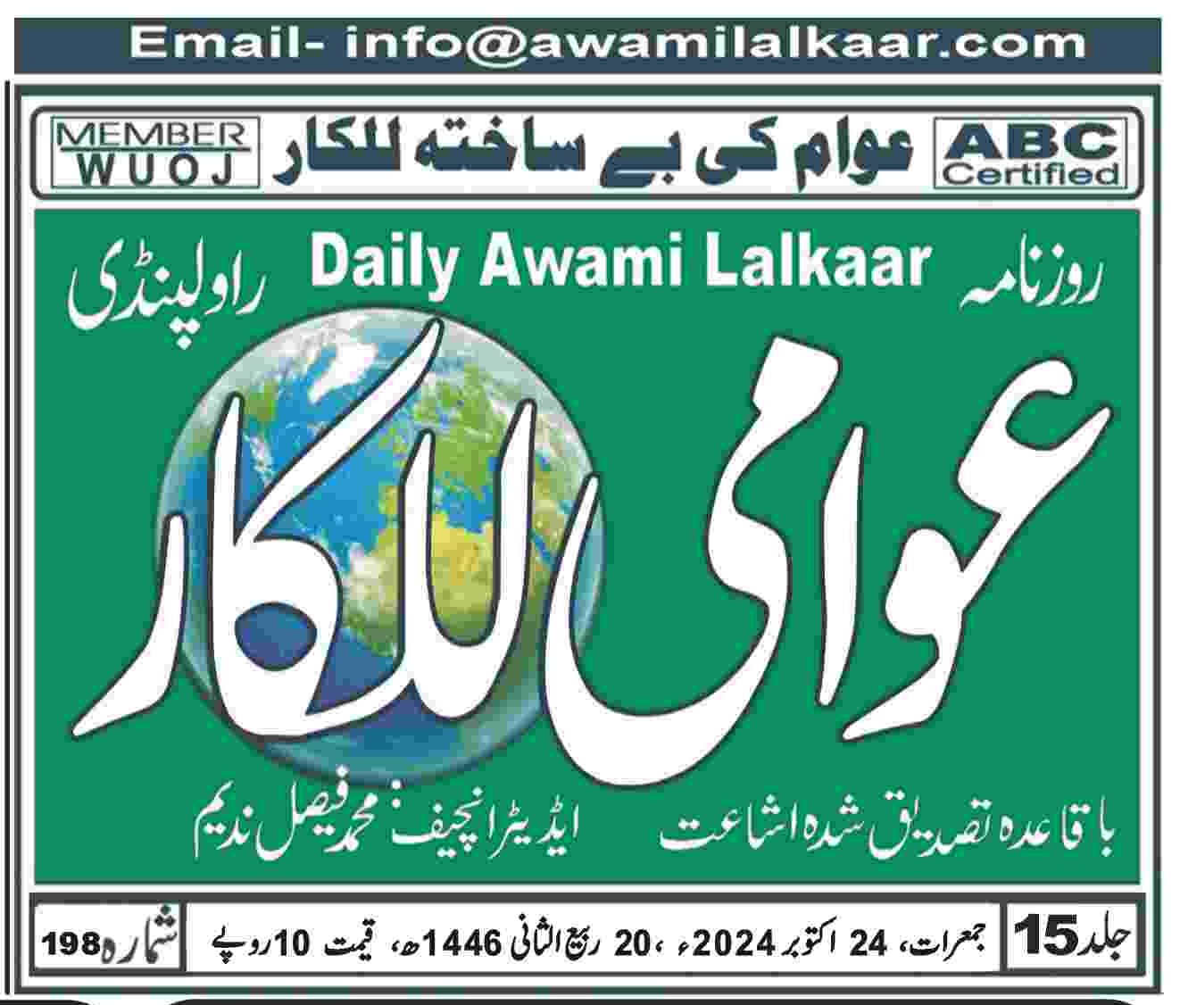 عوامی للکار راولپنڈی بروز جمعرات 24 اکتوبر 2024