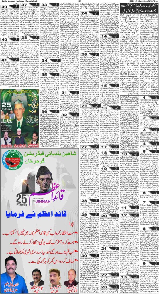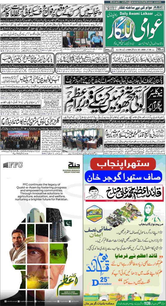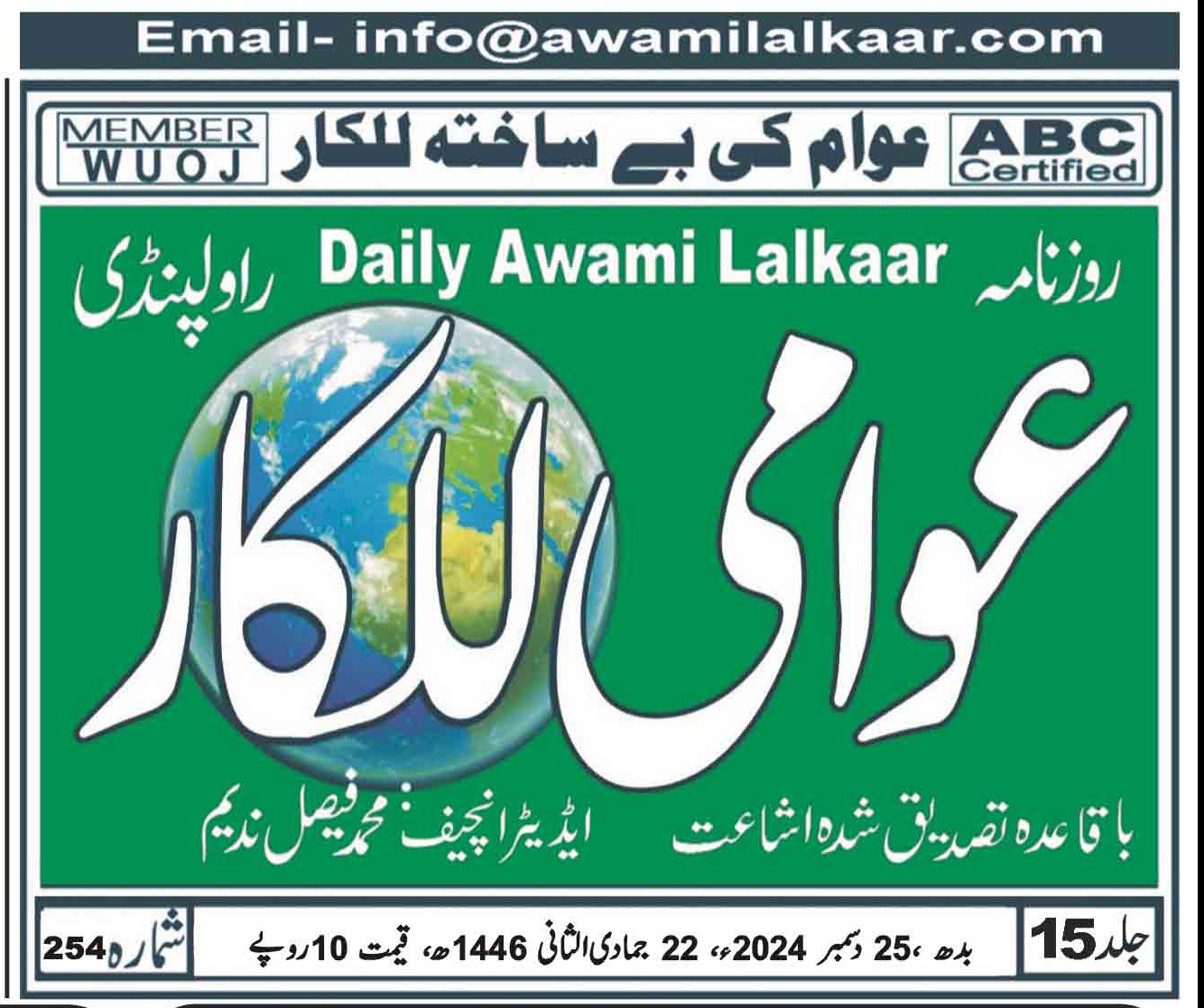 پی ڈی ایف ڈاؤن لوڈ کرنے کے لیے نیچے دیے گئے ڈاؤن لوڈ کے بٹن پر کلک کیجئے Awami Lalkaar 25-12-2024ڈاؤن لوڈ