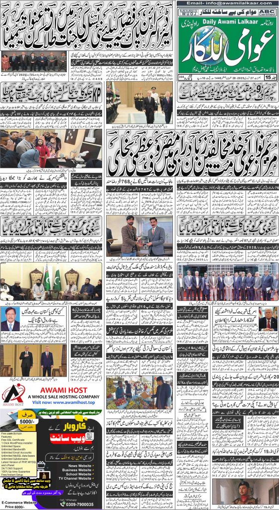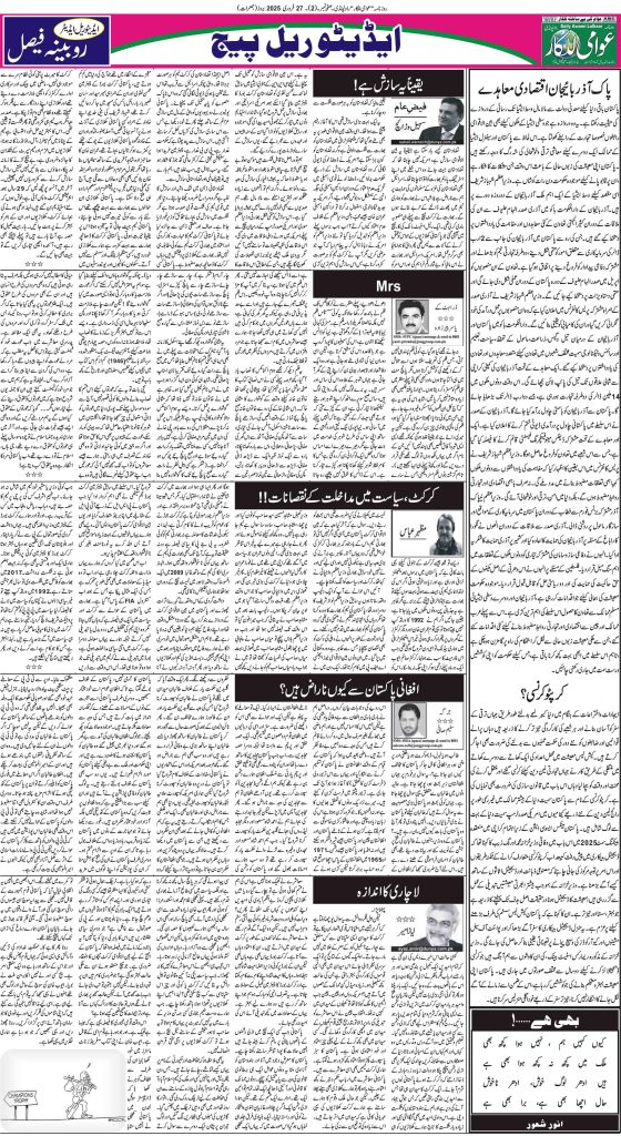 پی ڈی ایف ڈاؤن لوڈ کرنے کے لیے نیچے دیے گئے ڈاؤن لوڈ کے بٹن پر کلک کیجئے Awami Lalkaar 27-02-2025ڈاؤن لوڈ