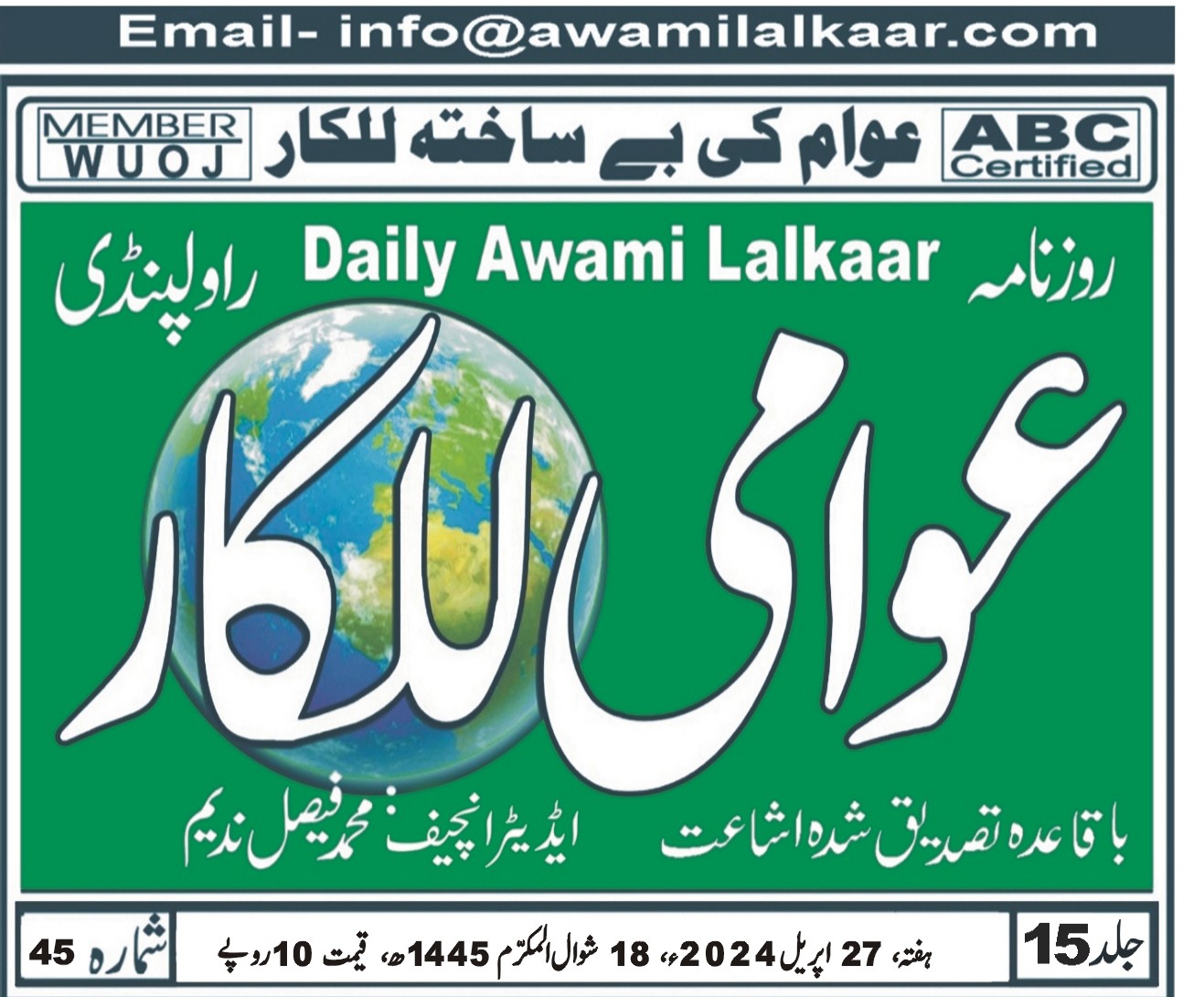 پی ڈی ایف ڈاؤن لوڈ کرنے کے لیے نیچے دیے گئے ڈاؤن لوڈ کے بٹن پر کلک کیجئے Awami Lalkaar 27-04-2024ڈاؤن لوڈ . . . . . . . .