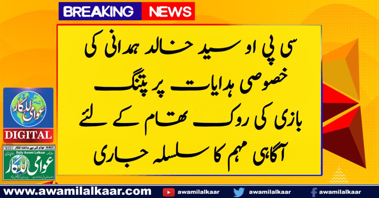 سی پی او سید خالد ہمدانی کی خصوصی ہدایات پر پتنگ بازی کی روک تھام کے لئے آگاہی مہم کا سلسلہ جاری،