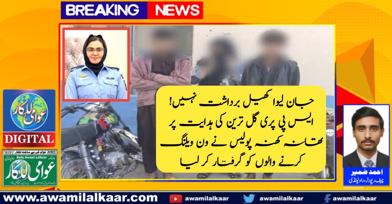 جان لیوا کھیل برداشت نہیں! ایس پی پری گل ترین کی ہدایت پر تھانہ کھنہ پولیس نے ون ویلنگ کرنے والوں کو گرفتار کر لیا