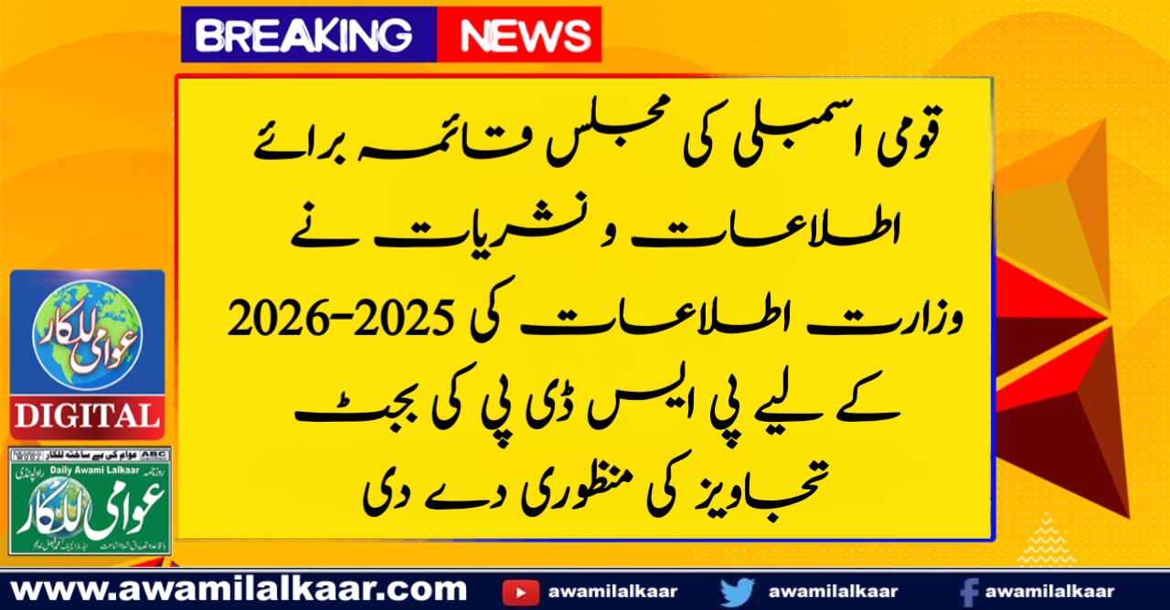 قومی اسمبلی کی مجلس قائمہ برائے اطلاعات و نشریات نے وزارت اطلاعات کی 2025-2026 کے لیے پی ایس ڈی پی کی بجٹ تجاویز کی منظوری دے دی