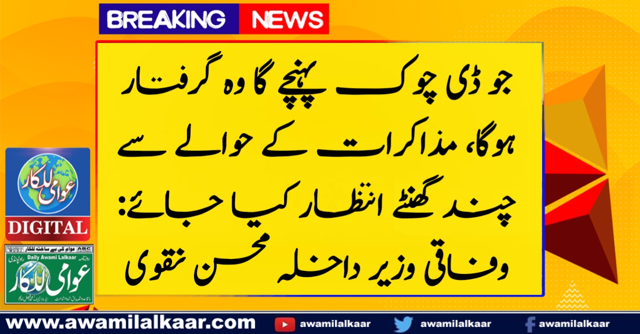 جو ڈی چوک پہنچے گا وہ گرفتار ہوگا، مذاکرات کے حوالے سے چند گھنٹے انتظار کیا جائے: وفاقی وزیر داخلہ محسن نقوی
