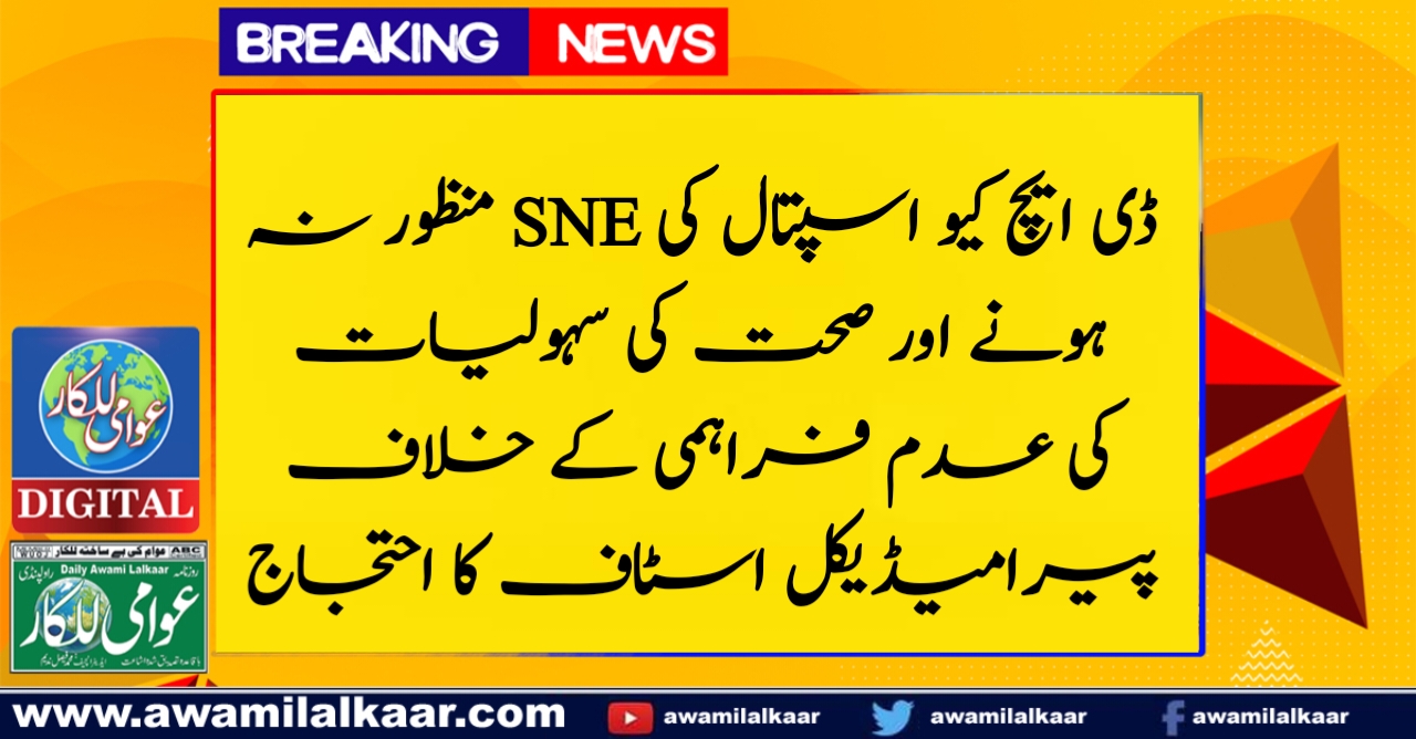 ڈی ایچ کیو اسپتال کی sne منظور نہ ہونے اور صحت کی سہولیات کی عدم فراہمی کے خلاف پیرامیڈیکل اسٹاف کا احتجاج