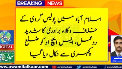 اسلام آباد میں پولیس گردی کے خلاف وکلاء برادری کا شدید ردعمل، ایس ایچ او کو ضلع کچہری سے نکال…