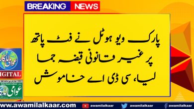 اسلام آباد (احمد ضمیر سے) پارک ویو ہوٹل انتظامیہ نے فٹ پاتھ پر بغیر کسی اجازت کے کُرسیاں اور میزیں…