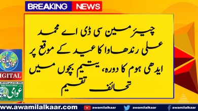 چیئرمین سی ڈی اے محمد علی رندھاوا کا عید کے موقع پر ایدھی ہوم کا دورہ، یتیم بچوں میں تحائف تقسیم