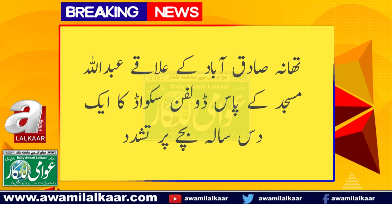 تھانہ صادق آباد کے علاقے عبداللہ مسجد کے پاس ڈولفن سکواڈ کا ایک دس سالہ بچے پر تشدد