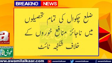 ضلع چکوال کی تمام تحصیلوں میں ناجائز منافع خوروں کے خلاف شکنجہ ٹائٹ