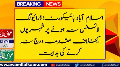 بغیر لائسنس گاڑی چلانے والوں کے خلاف سخت اقدامات پر قانونی سوالاتاسلام آباد (این ای این) اسلام آباد ہائی کورٹ…