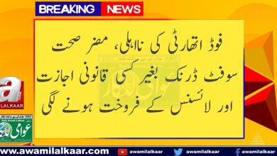 فوڈ اتھارٹی کی نااہلی، مضر صحت سوفٹ ڈرنک بغیر کسی قانونی اجازت اور لائسنس کے فروخت ہونے لگی