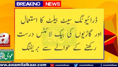 ڈرائیونگ سیٹ بیلٹ کا استعمال اور گاڑیوں کی بیک لائٹس درست رکھنے کے حوالے سے بریفنگ