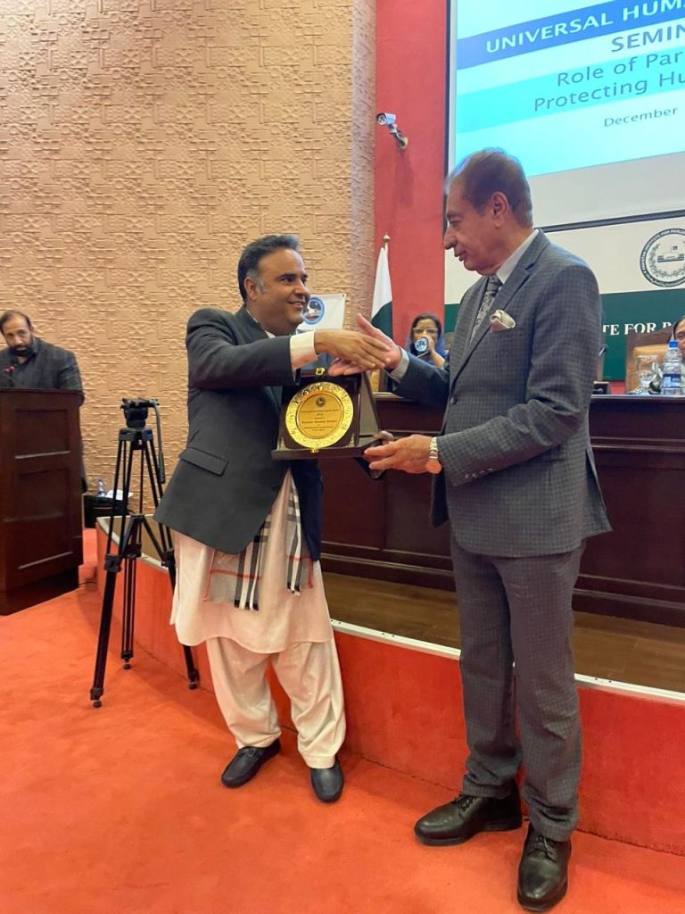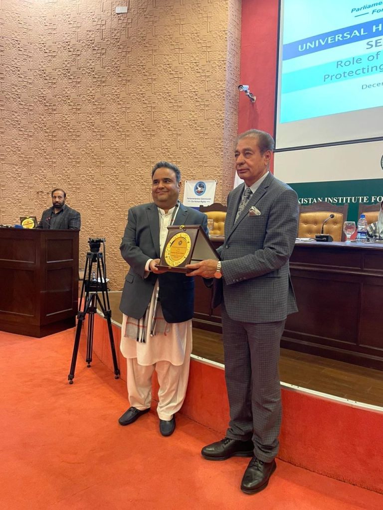 پارلیمنٹیرینز کمیشن فار ہیومن رائٹس (PCHR) نے آج اسلام آباد میں منعقدہ تقریب میں سینیٹر دنیش کمار کو Parliamentary Human Rights Award 2025 پیش کیا۔ یہ ایوارڈ انسانی حقوق، مذہبی آزادی، اور پاکستان کی اقلیتی برادری کے آئینی حقوق کے تحفظ کے لئے ان کی نمایاں پارلیمانی خدمات کے اعتراف میں دیا گیا۔