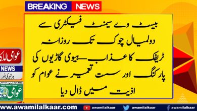 بیسٹ وے سیمنٹ فیکٹری سے دولمیال چوک تک روزانہ ٹریفک کا عذاب—ہیوی گاڑیوں کی پارکنگ اور سست تعمیر نے عوام کو اذیت میں ڈال دیا