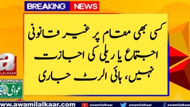 کسی بھی مقام پر غیر قانونی اجتماع یا ریلی کی اجازت نہیں، ہائی الرٹ جاری