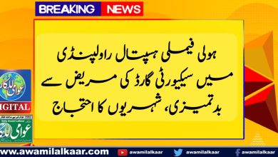 ہولی فیملی ہسپتال راولپنڈی میں سیکیورٹی گارڈ کی مریض سے بدتمیزی، شہریوں کا احتجاج