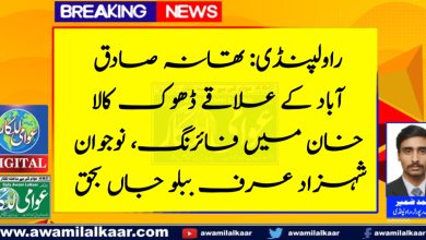 راولپنڈی: تھانہ صادق آباد کے علاقے ڈھوک کالا خان میں فائرنگ، نوجوان شہزاد عرف ببلو جاں بحق