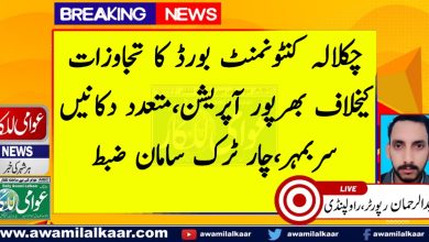 چکلالہ کنٹونمنٹ بورڈ کا تجاوزات کیخلاف بھرپور آپریشن،متعدد دکانیں سربمہر،چار ٹرک سامان ضبط