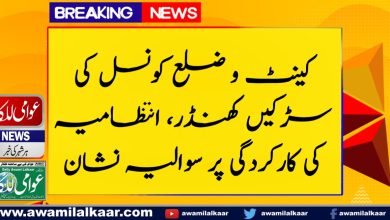 کینٹ و ضلع کونسل کی سڑکیں کھنڈر، انتظامیہ کی کارکردگی پر سوالیہ نشان