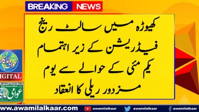 کھیوڑہ میں سالٹ رینج فیڈریشن کے زیر اہتمام یکم مئی کے حوالے سے یوم مزدور ریلی کا انعقاد