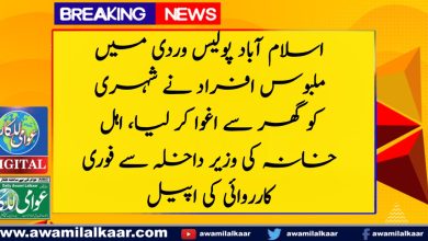 اسلام آباد پولیس وردی میں ملبوس افراد نے شہری کو گھر سے اغوا کر لیا، اہل خانہ کی وزیر داخلہ سے فوری کارروائی کی اپیل