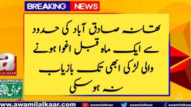 تھانہ صادق آباد کی حدود سے ایک ماہ قبل اغوا ہونے والی لڑکی ابھی تک بازیاب نہ ہوسکی