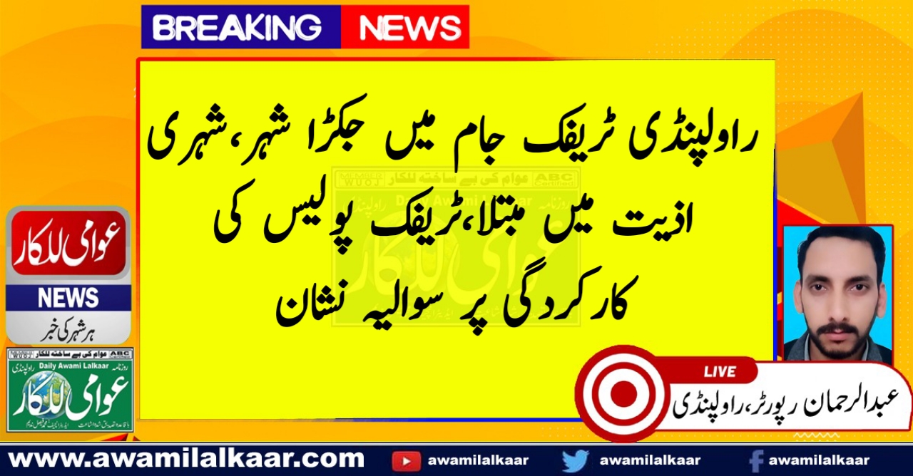 راولپنڈی ٹریفک جام میں جکڑا شہر،شہری اذیت میں مبتلا،ٹریفک پولیس کی کارکردگی پر سوالیہ نشان